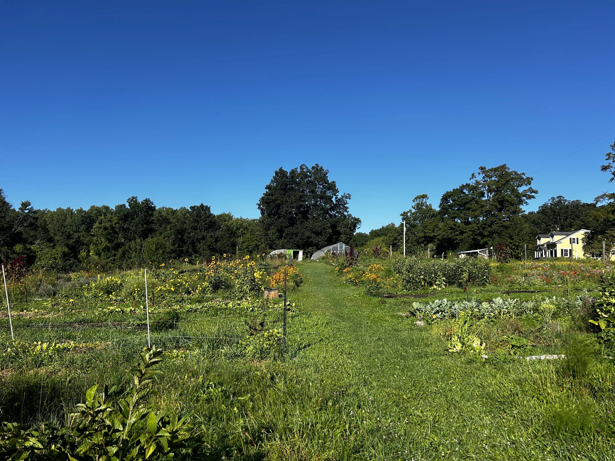 The garden is a conversation that spans season after season, forward and back, with all beings that emerge within it. It has evolved specifically in the last five years from horse pasture to a diversified food forest with an intention to recognize and note the land’s ancestral lineage under the care of the Munsee Lenape people. The land is currently tended towards nurturing those that participate with it, the human and more-than-human world, by way of offering food and a sense of belonging, even if just for a walk around. The garden features many wheelchair accessible paths that guide folks through the keystones of the garden, which include a willow/stump circle, community-built garden boxes, a living labrynth, hills of perennials, no-till garden beds, a polyculture forest, a hand-dug pond, art installations, greenhouses, etc. The garden invites every body with the intention that all might understand, in their own way, the interconnection of a place teaming with life. Written by Jess Cherry, Land Tender of Lonely Worm Farm.